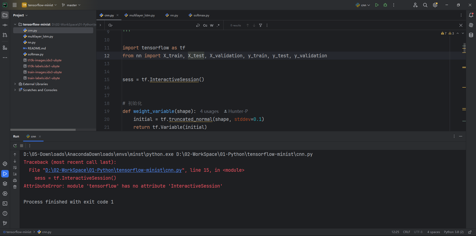 AttributeError: module 'tensorflow' has no attribute 'InteractiveSession'错误原因分析: